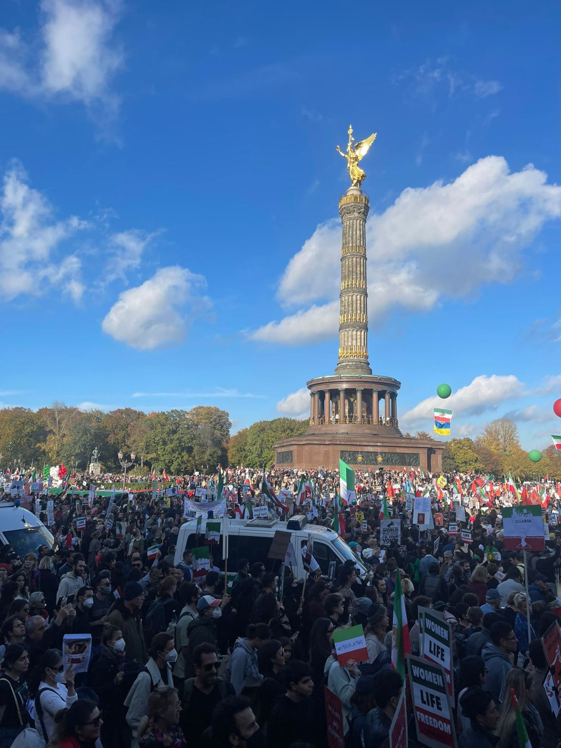 Hêjayê gotinê ye, ku bêtirî 80.000 kesan beşdarî di xwepêşandana Berlînê de ya li dijî reftarên nemirovane yên rejîma komara Islamîya Îranê kirin Li gor nûçeyên medyaya Almanyayê ku navenda rewanda Kurdistanî-Berlîn ê tê de beşdar bû û bi hezaran Kurdên her çar parçeyên Kurdistanê beşdar bûn Pêximberê pîroz ê Kurdistanê bi armanca şermezarkirina reftara dîktatorî ya rejîma Îranê ku piştî şehîdbûna Zîna Emîn beşdarî çalakî û xwepêşandanên Rojhilatê Kurdistanê bû dest pê kir û piştre bajarên din ên welêt dorpêç kir .