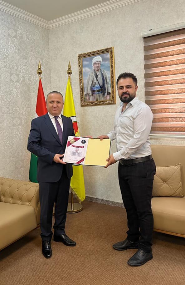 بەرپرسی دیسکی ڕەوەندی کوردستانی لە بارەگای بارزانی، سوپاسنامەی ئاڕاستەی بەشێک لە راگەیانکارانی ناوەندی ڕەوەندی کوردستانی کرد، ئەوەش وەک پێزانینێک بۆ کارەکانیان.